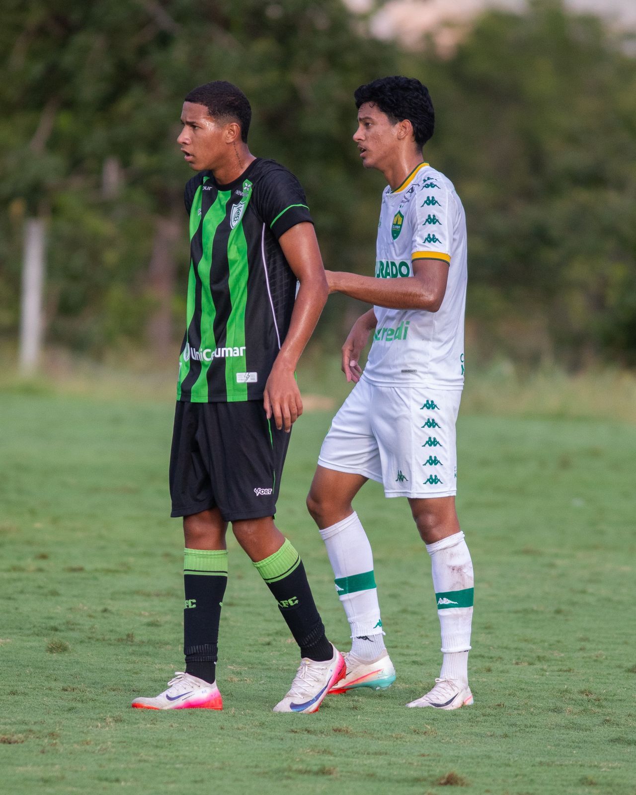 Foto: Asscom Dourado Na tarde desta quarta-feira (1º), no CT Manoel Dresch, a equipe Sub-20 do América venceu o Cuiabá, por 2 a 0, pela quarta rodada do Campeonato Brasileiro da categoria. O DNA Formador abriu o placar ainda na primeira etapa, aos 12 minutos, com gol do zagueiro e capitão Thallyson. Já aos 40 minutos, a equipe da casa marcou contra. Com o resultado, o time comandando pelo técnico Eduardo Guadagnucci passa a ocupar a nona colocação da tabela, com cinco pontos. O América Sub-20 volta a campo na próxima quarta-feira (8) contra o Juventude, às 15h, na Montanha dos Vinhedos. Na sequência, no dia 11 de abril (sábado), às 15h, o DNA Formador disputa o clássico contra o Cruzeiro, pela terceira rodada do Campeonato Mineiro da categoria. A partida acontecerá na Arena Frimisa.